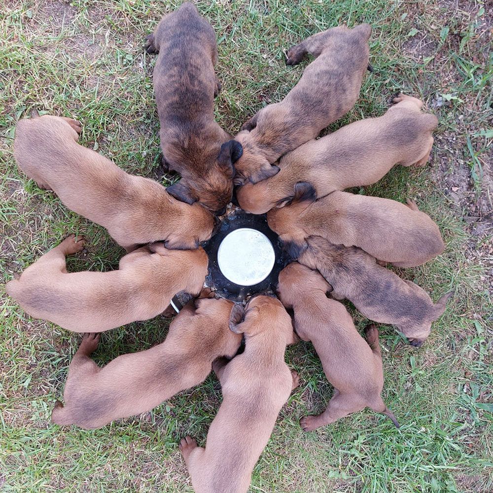 Den 13.-14. maj 2024 kørte jeg derfor til et skovdistrikt sydøst for Berlin i det gamle Østtyskland, og besøgte opdrætteren og så de skønne hvalpe. Hvalpene var på dette tidspunkt knap 6 uger gamle, og færtprægningen med skind og klove var i fuld gang, så der var fart over feltet.