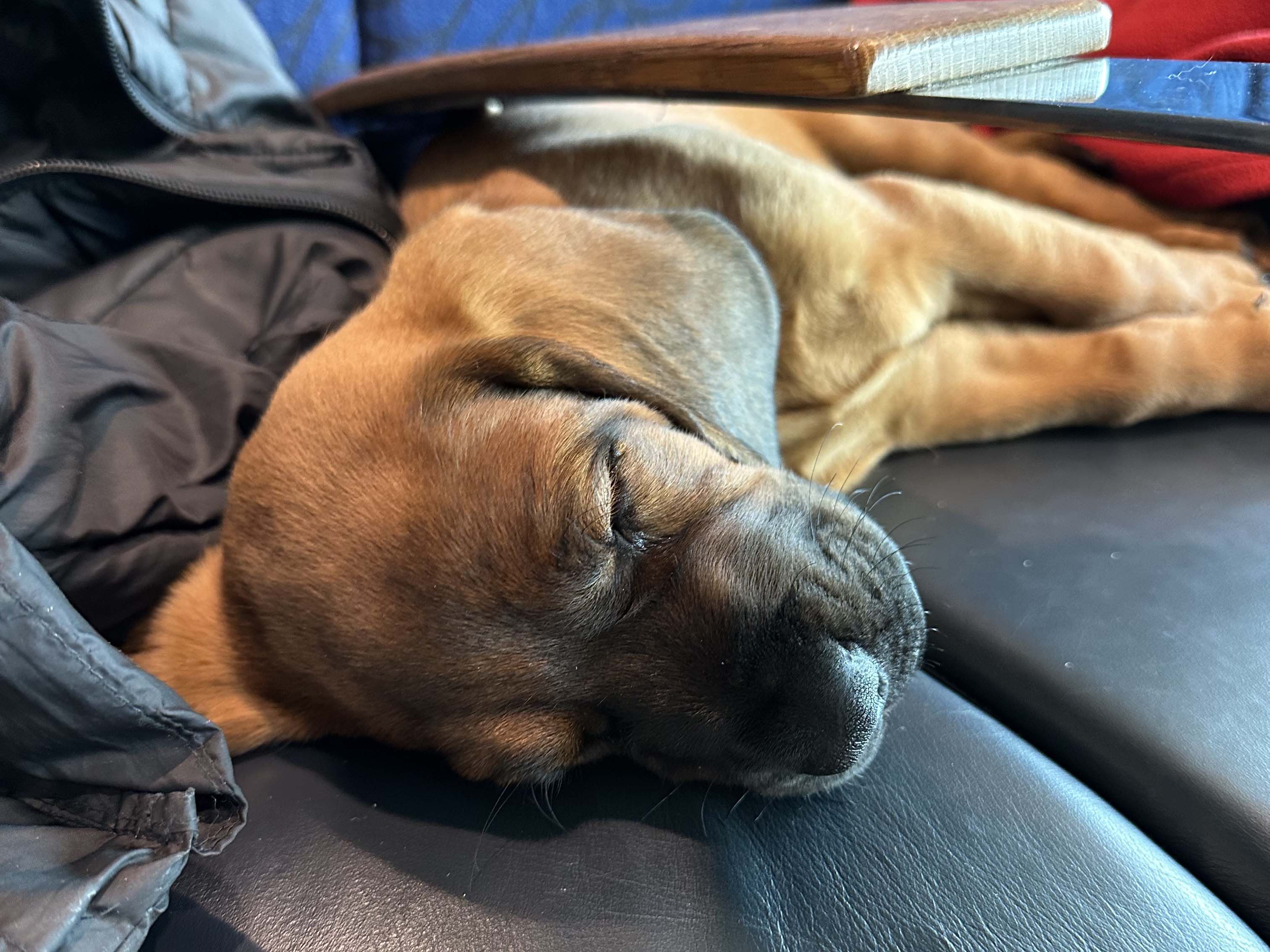 Holger er allerede her den først dag faldet godt til, og lige nu her kl. 22:00 ligger han på min plads i sofaen og sover.