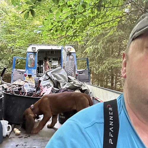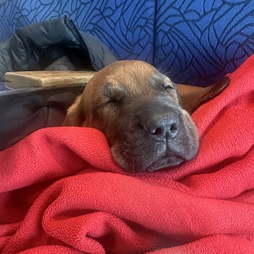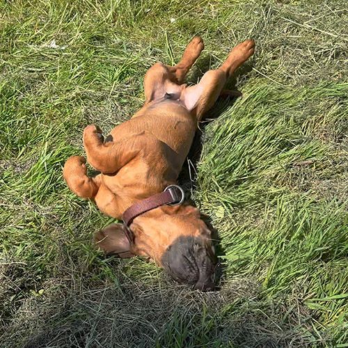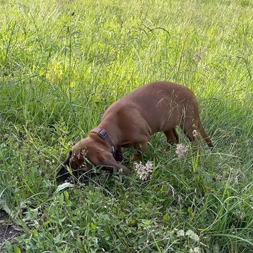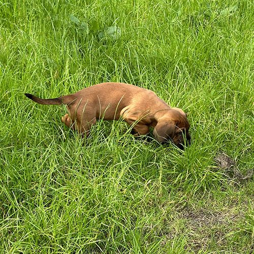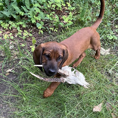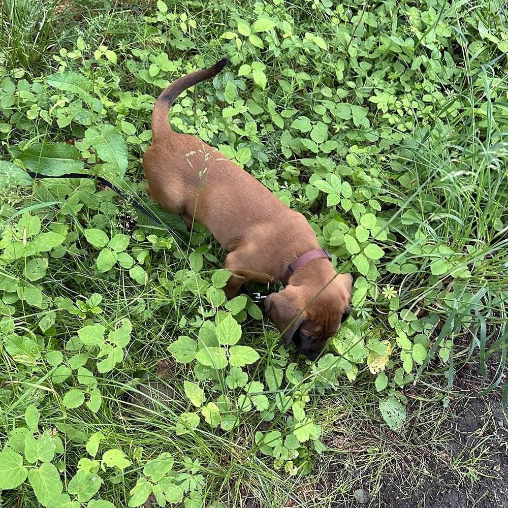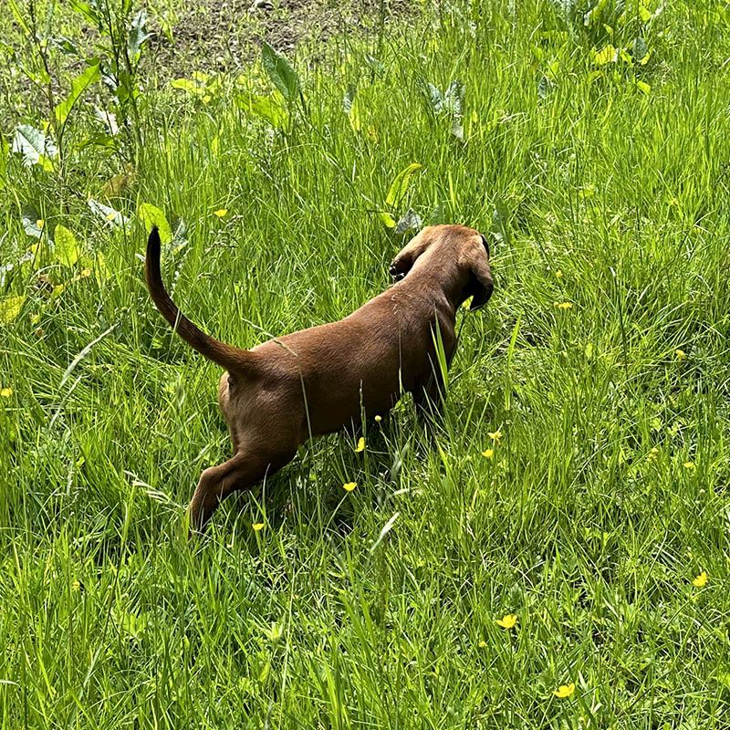 Holger er hentet i Tyskland den 31 maj som 8-ugers hvalp, og spor- og schweisstræningen af ham startede allerede op hos opdrætteren, i form af færtprægning m.m.