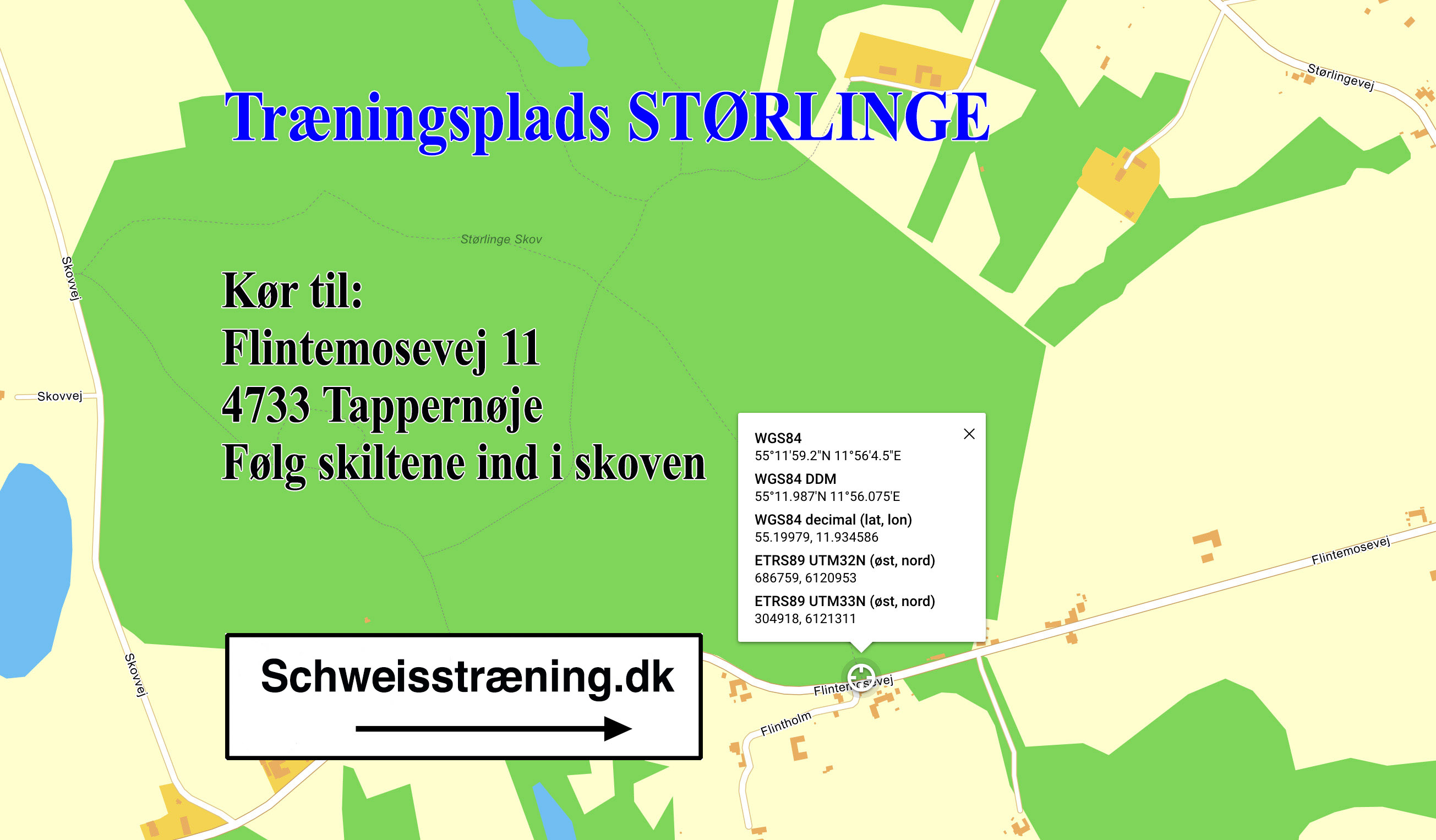 Følg skiltene "Schweisstræning.dk" ind i skoven.