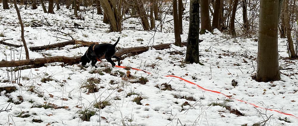 - Ved at have udredt færtskospor i snevejr, og konstateret at det ingen hindring er for hunden, er man også meget mere rolig hvis man en dag stiller til en schweissprøve hvor det sner eller har sneet.