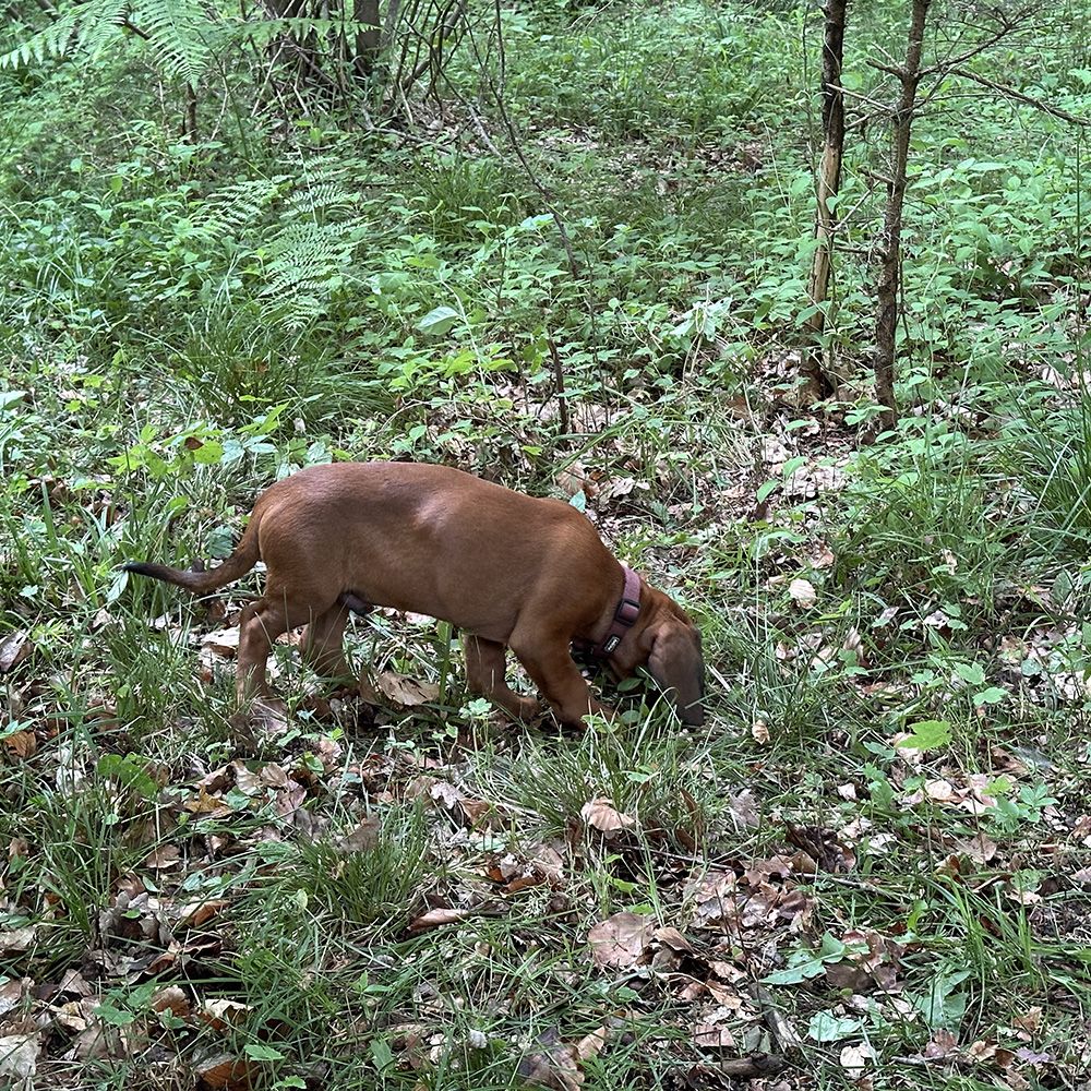 Det er her at de daglige lufteture i naturen og specielt i skoven, bør være en del af hundens ”uddannelse”, specielt hvis hunden senere skal kunne fungere som en god sporhund eller reg. schweisshund.