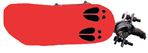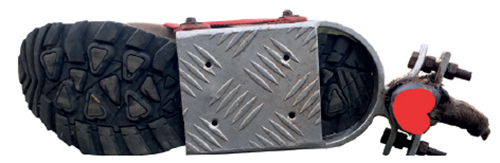 Når vi lægger spor, dækker vores fodsåler et betydeligt større område/areal, end klovene fra f.eks. et dådyr (illustreret med rødt på billedet ovenfor).