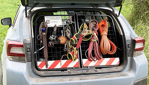 Man kan købe alverdens fint og dyrt schweissudstyr, men i bund og grund har du kun brug for et fast bredt læderhalsbånd samt en 10-meter lang flagline