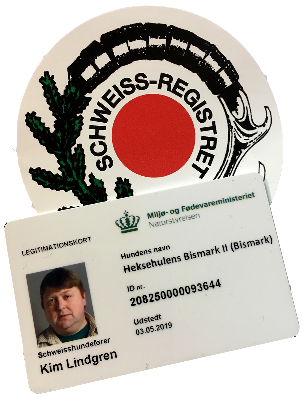 Den reg. schweisshundefører er udstyret med et ID-kort, udstedt af Naturstyrelsen.