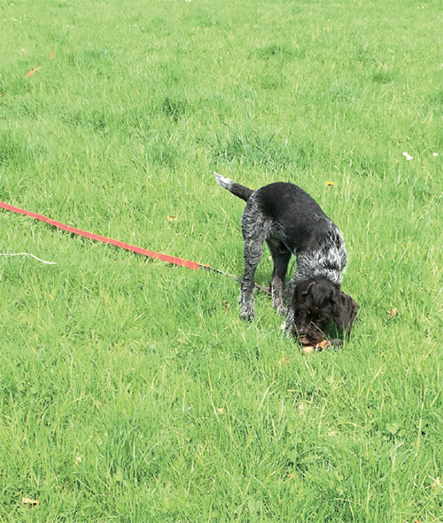 Sker dette husker jeg selvfølgelig omgående at ”rose” hunden, når den tager den udlagte fært op. Dvs. at jeg under udredningen af et spor (jeg selv har lagt), kan kommunikere med hunden undervejs, hvilket jeg er overbevist om, øger samarbejdet mellem hund og fører.